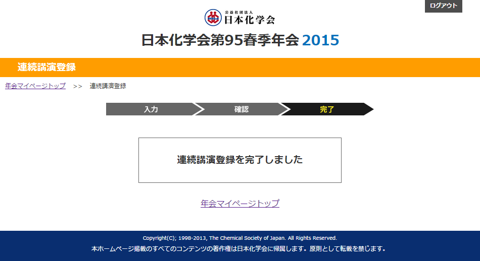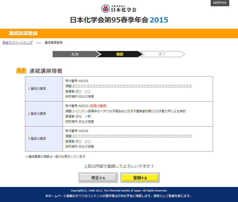 同じ研究室の発表を連続して行いたい場合、以下の手順に沿って連続講演登録を行って下さい。