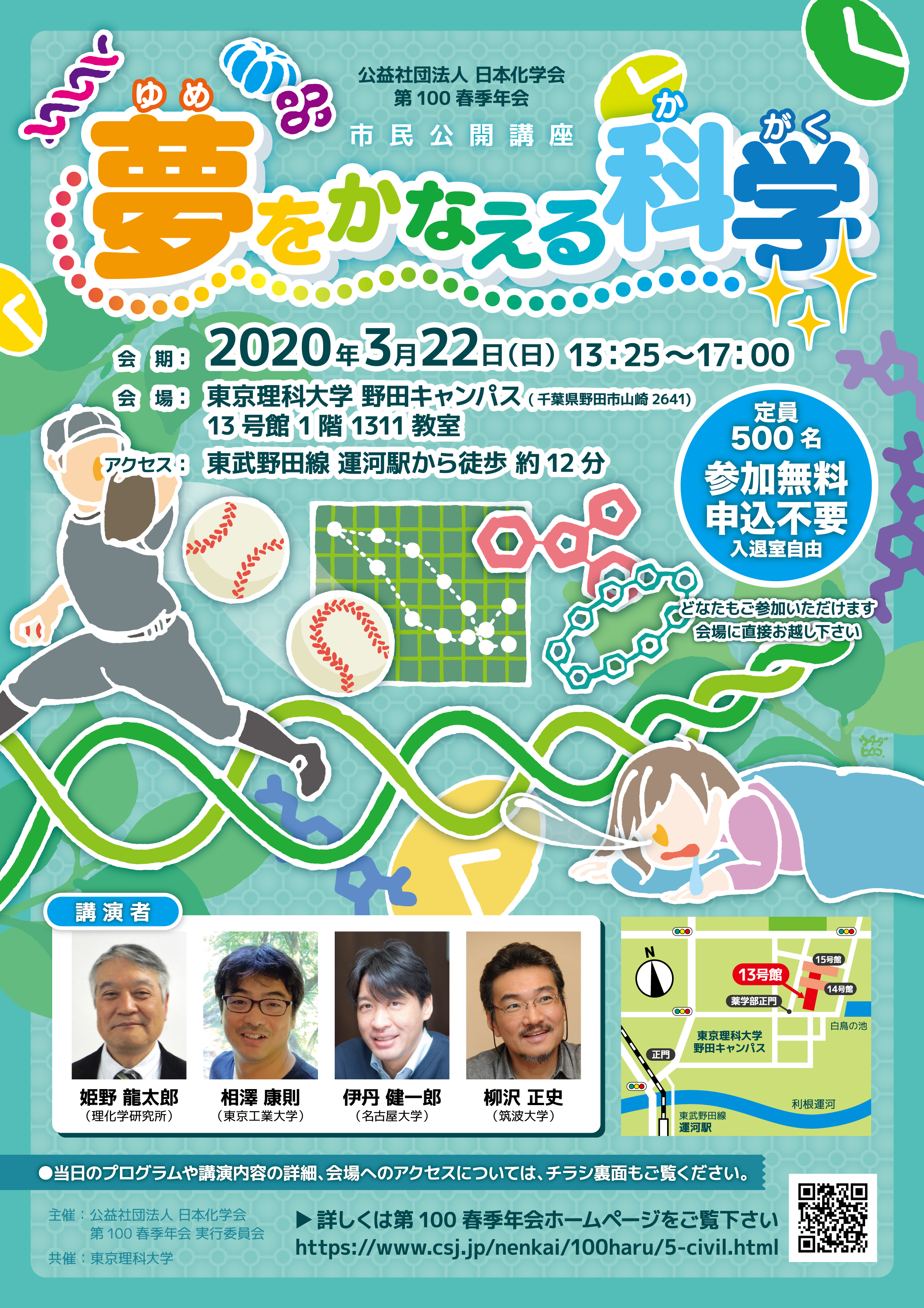 主催:日本化学会 第100春季年会 実行委員会 共催:東京理科大学 後援:野田市教育委員会,柏市教育委員会