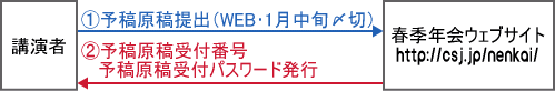 講演予稿原稿の提出方法はWEB投稿のみです。WEB投稿には、講演番号と受付番号が必要となります。(講演番号通知に記載しております)