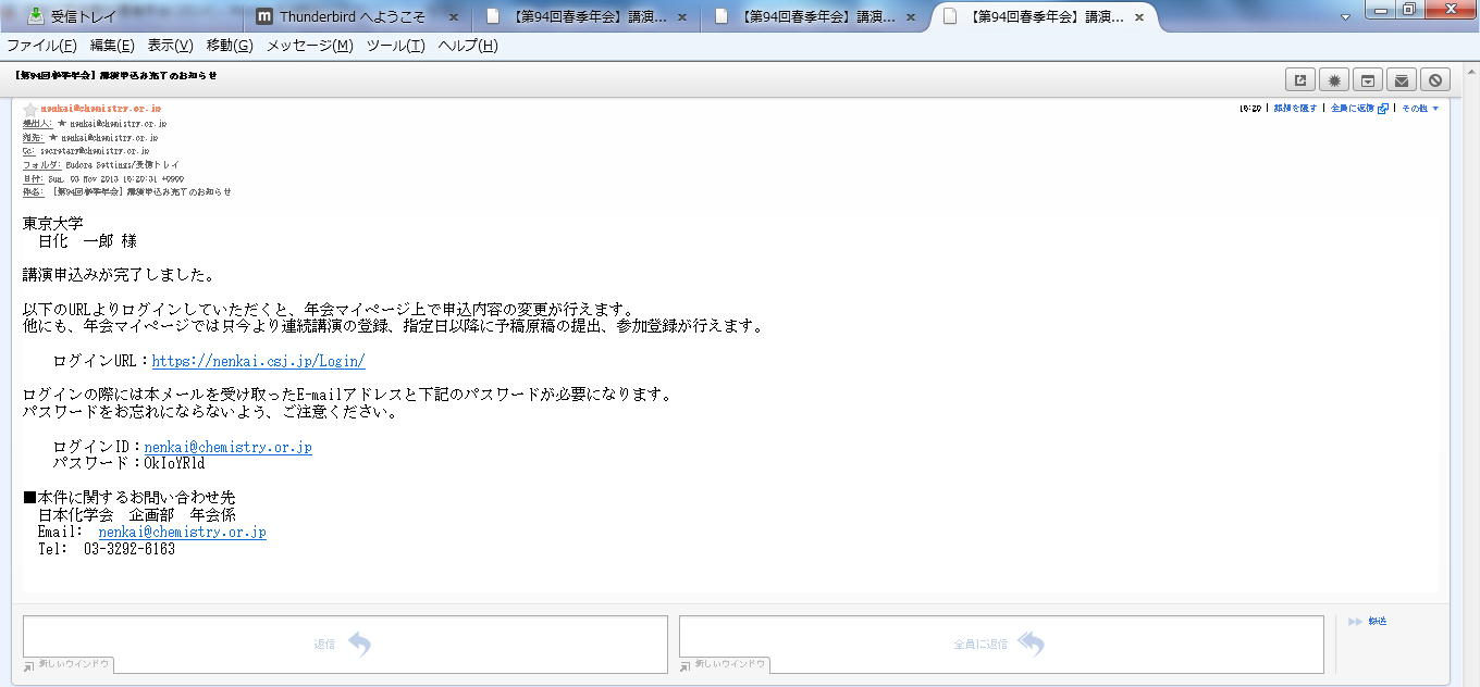 連続講演の登録はこの時点では完了していません。全ての連続する講演の申込が完了した後に、年会マイページ上より連続講演登録を行って下さい。詳細はこちらをご覧ください。 |