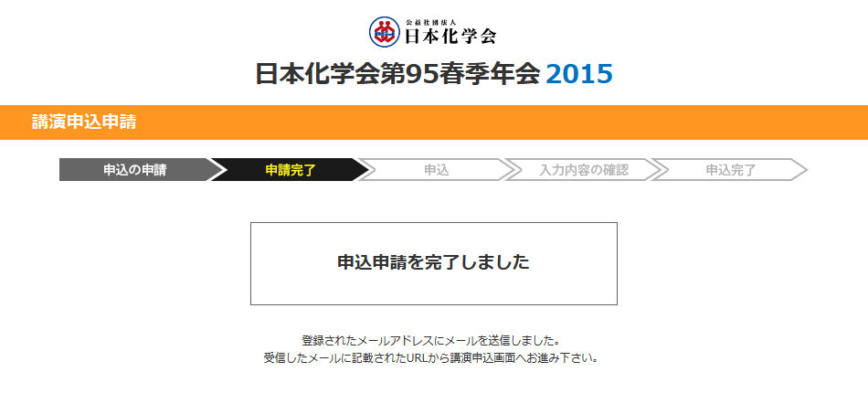 メールが受信されたことを確認して下さい。メールに記載されたURL から参加登録の入力画面へ進みます。