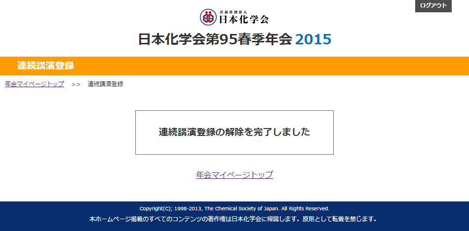 年会マイページトップの講演情報にある「連続講演登録を解除」ボタンをクリックして下さい。