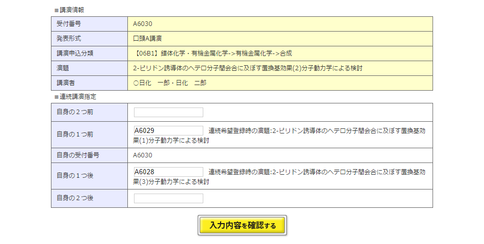 同じ研究室の発表を連続して行いたい場合、以下の手順に沿って連続講演登録を行って下さい。
