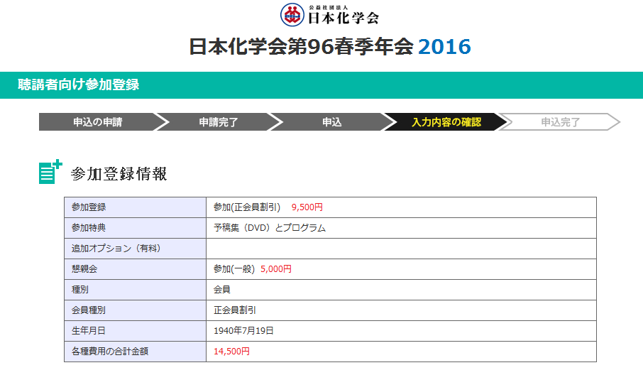 申込に必要な講演情報を入力し、『入力内容を確認する』ボタンをクリックして次へ進んで下さい。