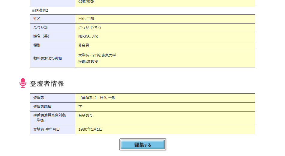 講演情報の確認・編集は以下の手順に沿って行って下さい。