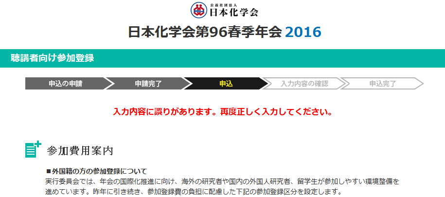 申込に必要な講演情報を入力し、『入力内容を確認する』ボタンをクリックして次へ進んで下さい。