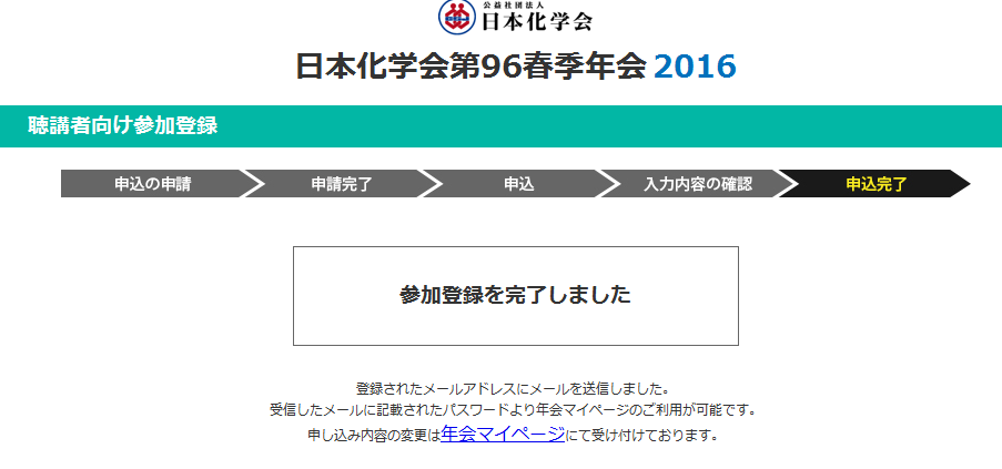 申込が完了すると年会マイページが作成されます。完了メールに記載されているログインID(E-mail アドレス)とパスワードを入力して下さい。