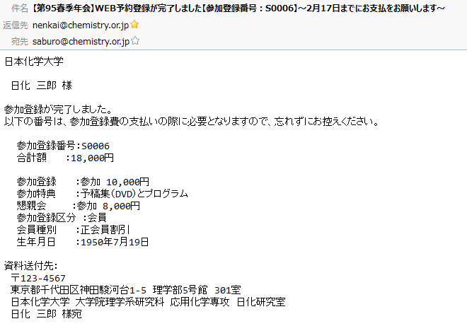 登録メールアドレスに「参加登録完了」のお知らせメールが届きます。